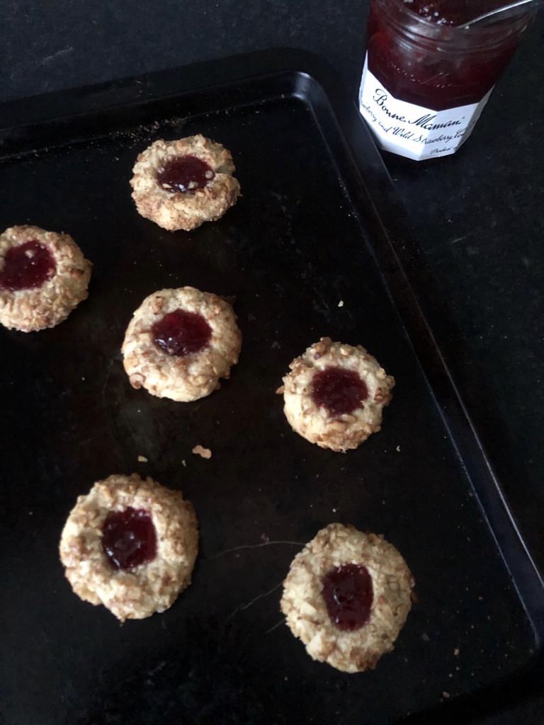 - Fill the dent with a jam of your choice and voila! They are ready to go into your pre-heated oven.